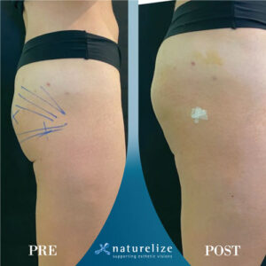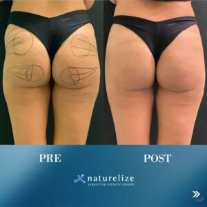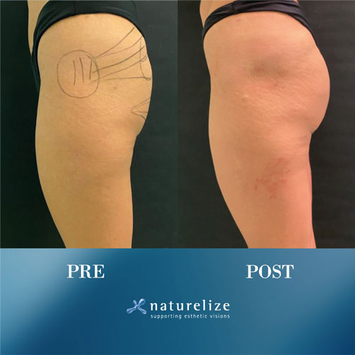 Il trattamento con acido ialuroniuco macromolecolare Naturelize riesce a realizzare tutto questo. Il rimodellamento dei glutei è possibile grazie alla tecnica B.A.F.F.I. (Biofiller Autologus Fat Filler Injection Face & Body), che aumenta il tono e l’elasticità della parte trattata, attenua le discromie, migliora l’idratazione e ridona una texture cutanea luminosa e più giovane. Questo trattamento riesce, in modo naturale, a fornire dei risultati duraturi e visibili con un’azione bio-ristrutturante.